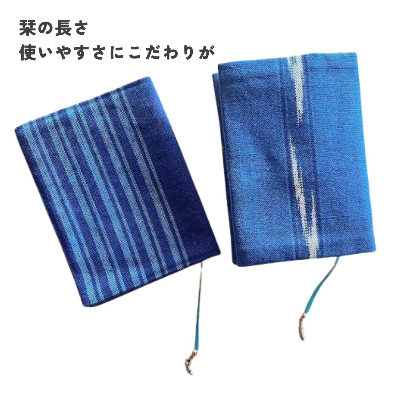 同じ藍でも、染めるたび、織るたびに少しずつ表情が異なり、世界にひとつだけのブックカバーになります。