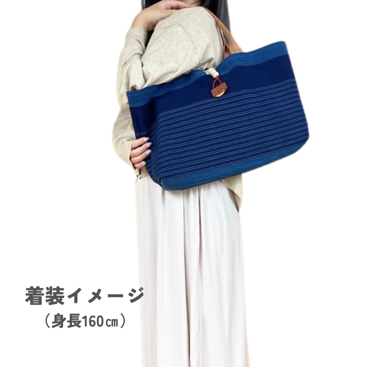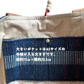 藍染めとインド藍で糸から染め、丁寧に手織りした布で仕立てた、横長ワイドサイズの大容量トートバッグです。