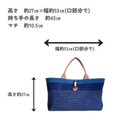 サイズ:高さ 約27cm × 幅 約53cm(口元で) × マチ 約10.5cm