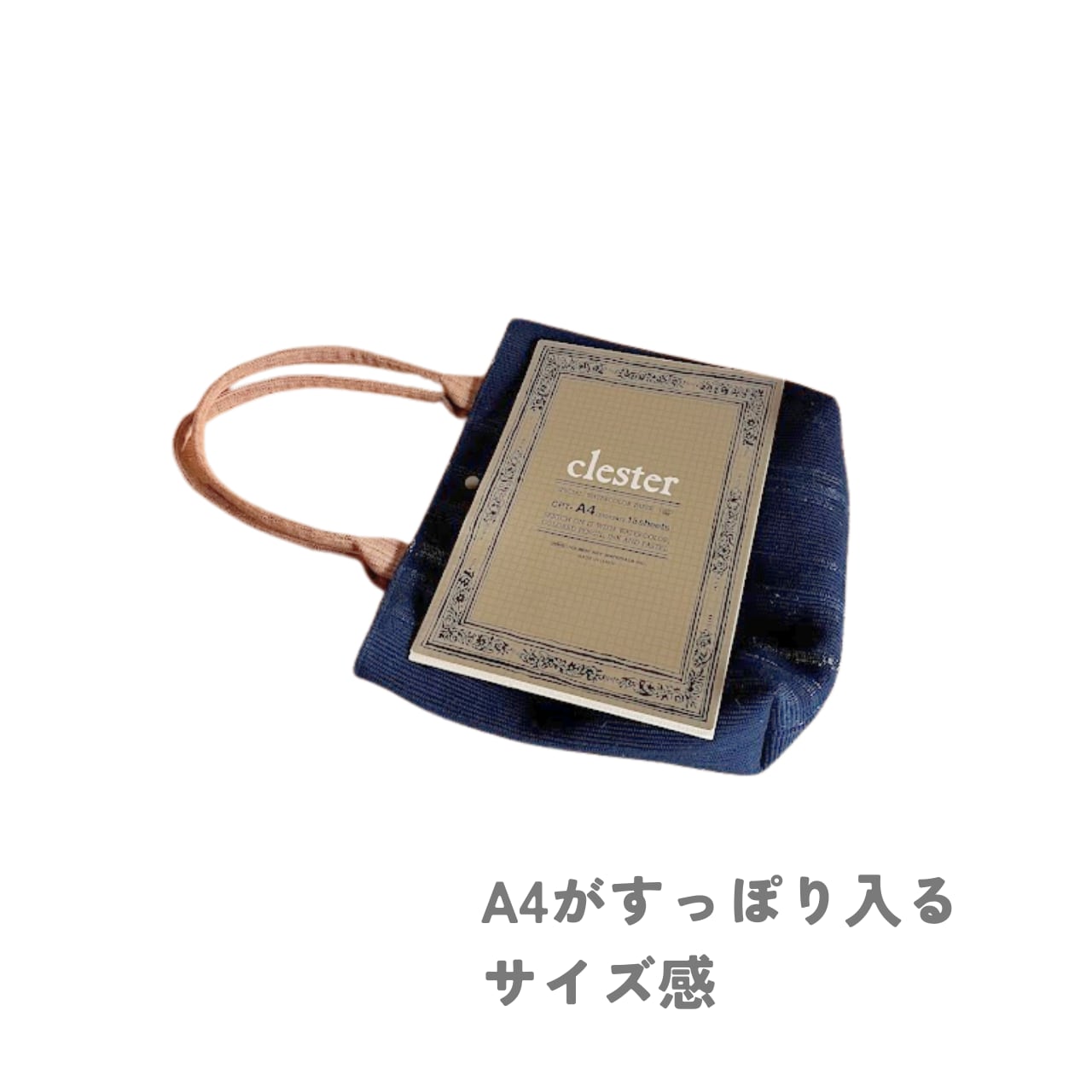 サイズは、A4が横向きに入る大きさ。縦に入れると、ギリギリ収まるくらいの絶妙なサイズ感です。