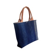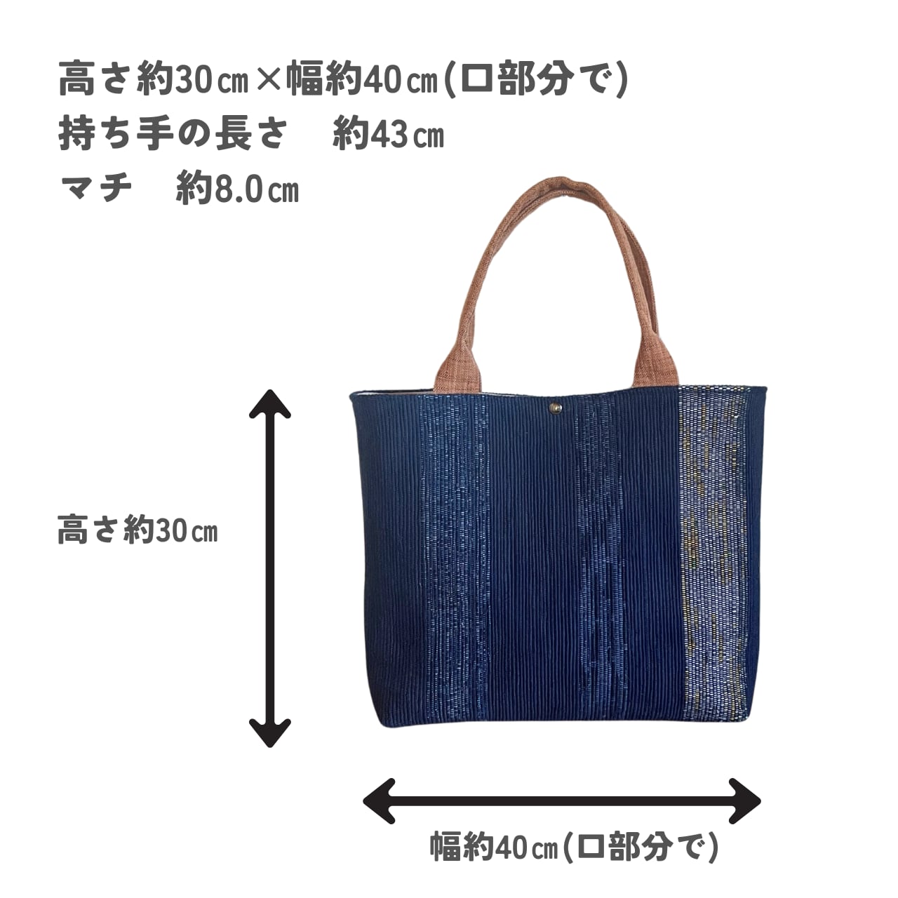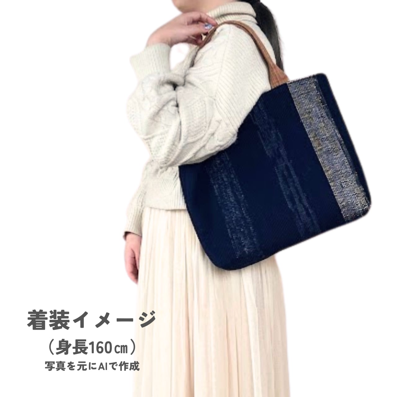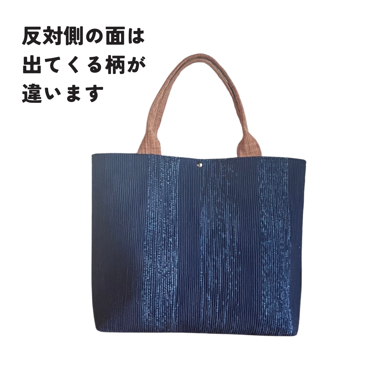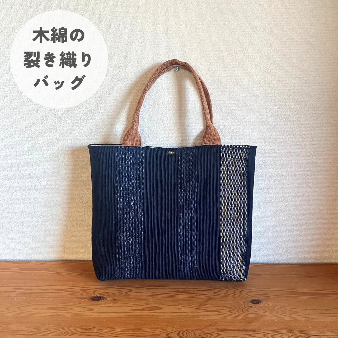 静夜の月明かり|裂き織りトートバッグ ― 浴衣地・絣・柿渋染め|手織り一点もの ―