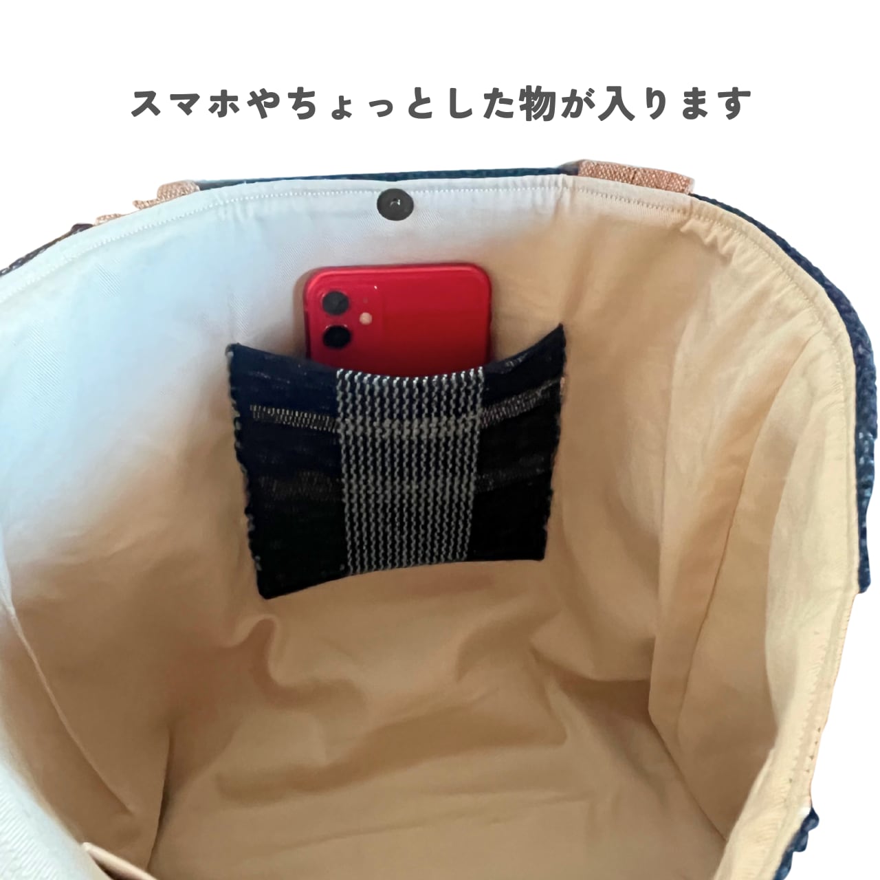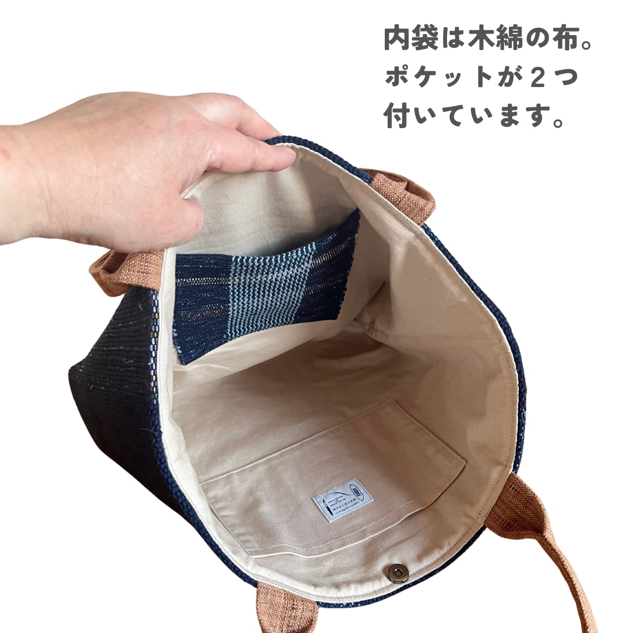 内布・内ポケット:木綿布(一部ポケットに裂き織り布を使用)