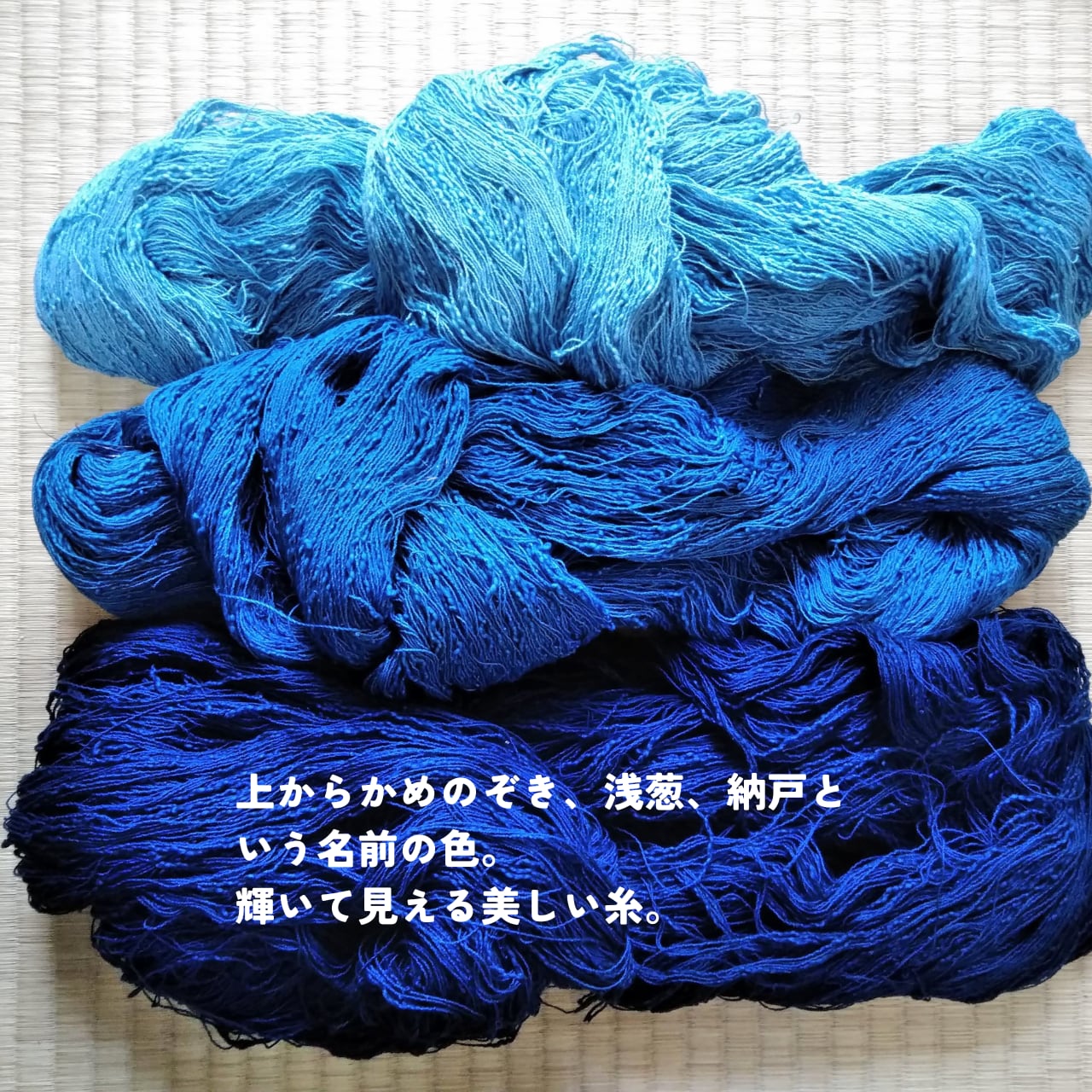 江戸時代から続く藍染め屋さんで染めていただいた、貴重な木綿糸。