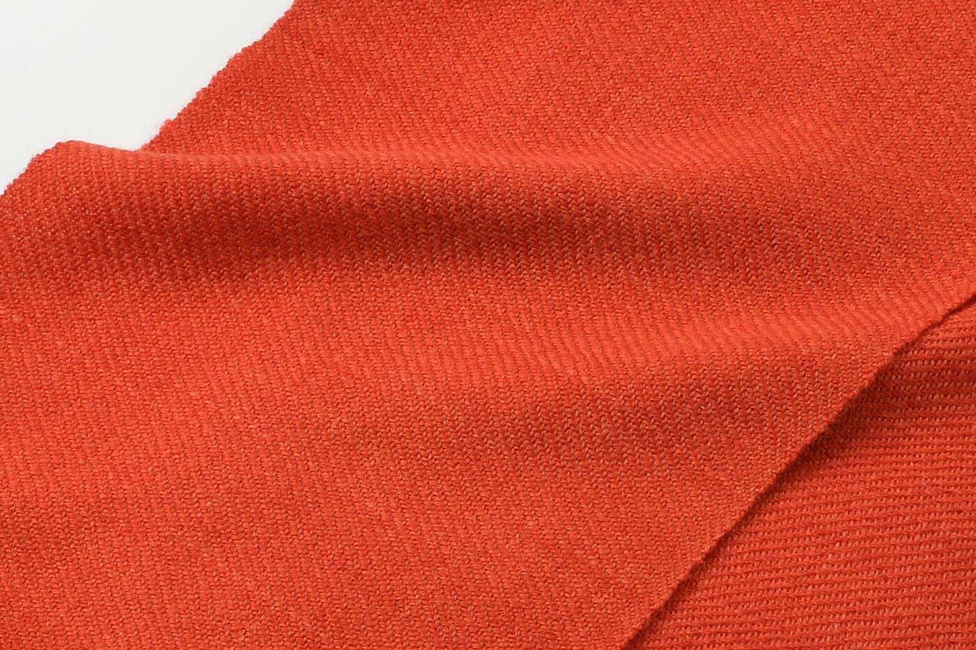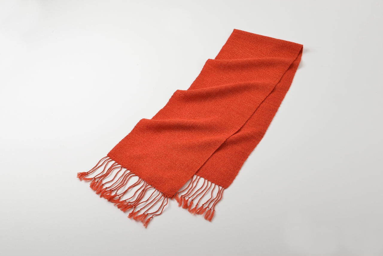 茜で染めた “鮮やかなオレンジ” の手織りウールマフラー。