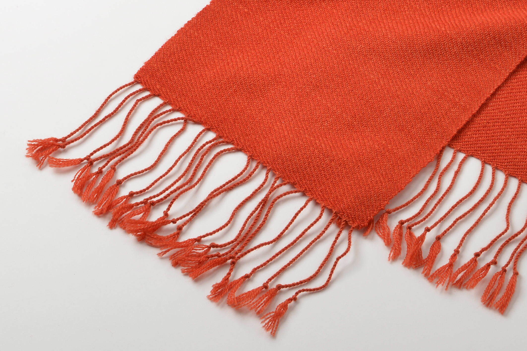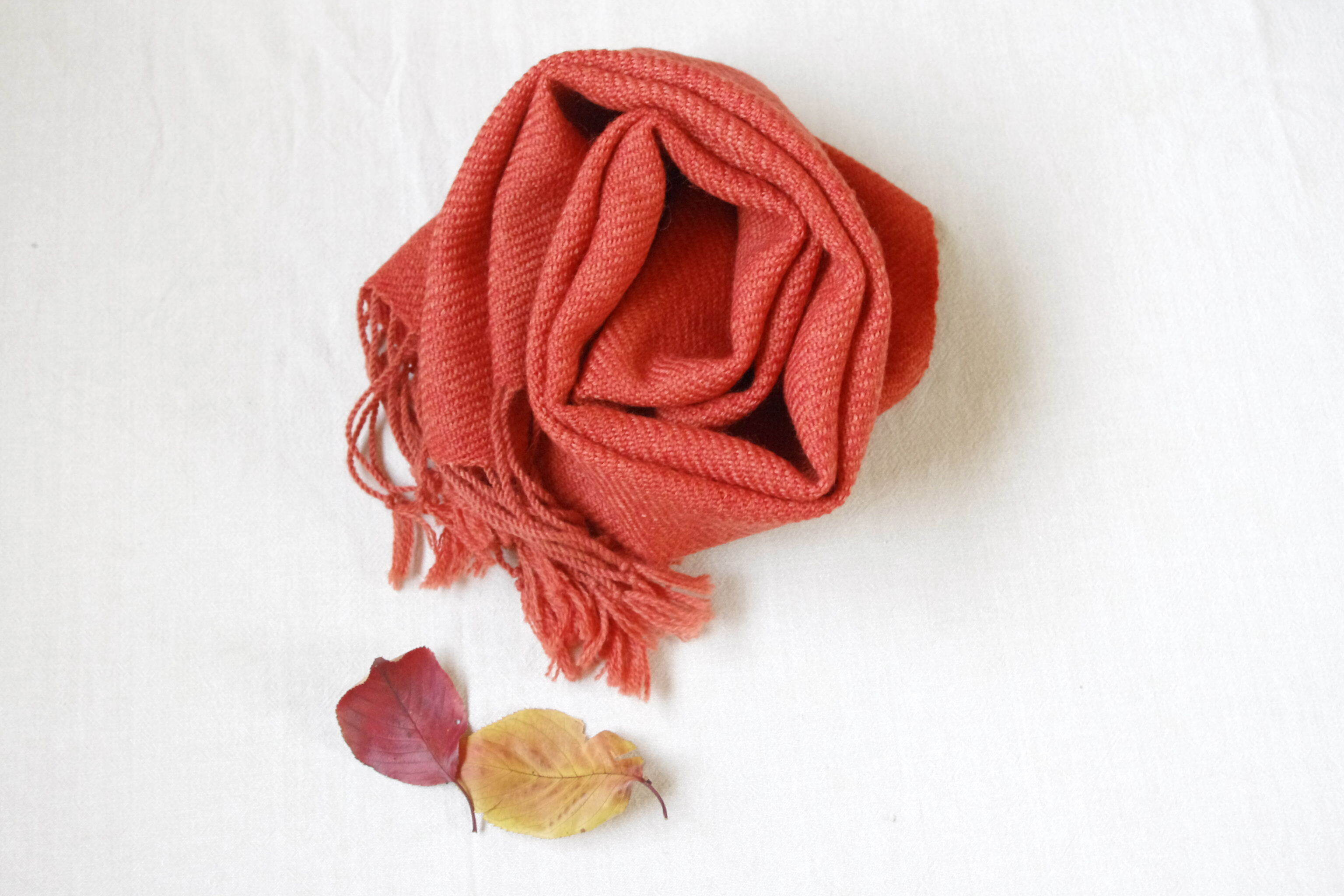 草木染めウールマフラー|茜染めオレンジ(手織り・鮮やか・還暦祝いにも)