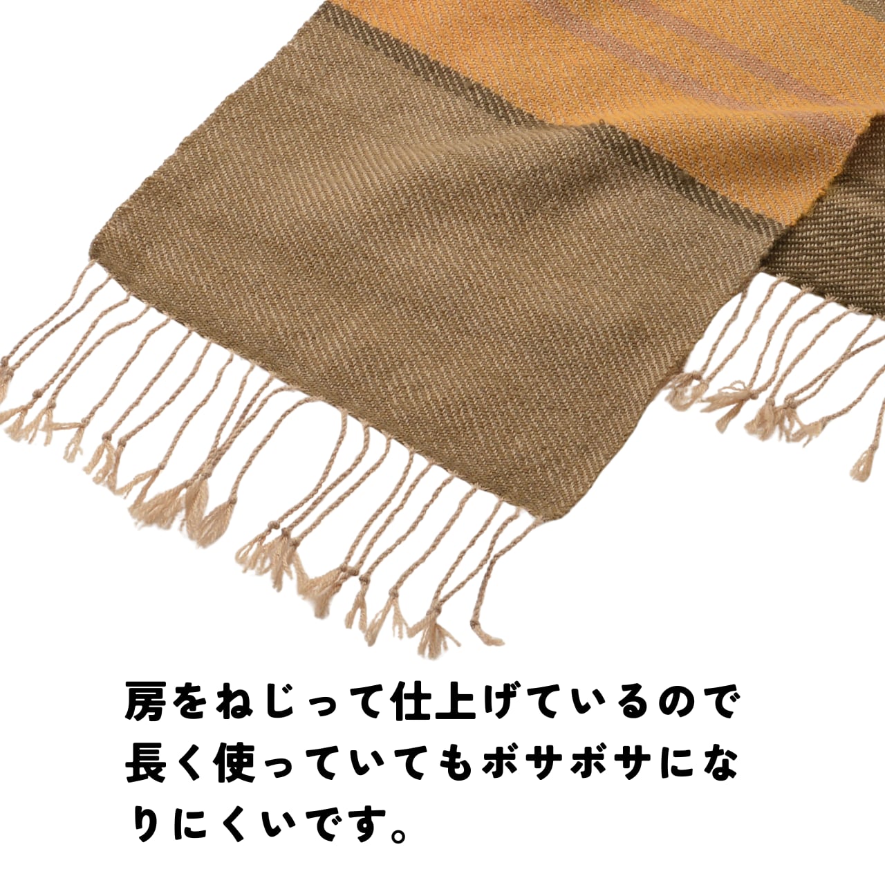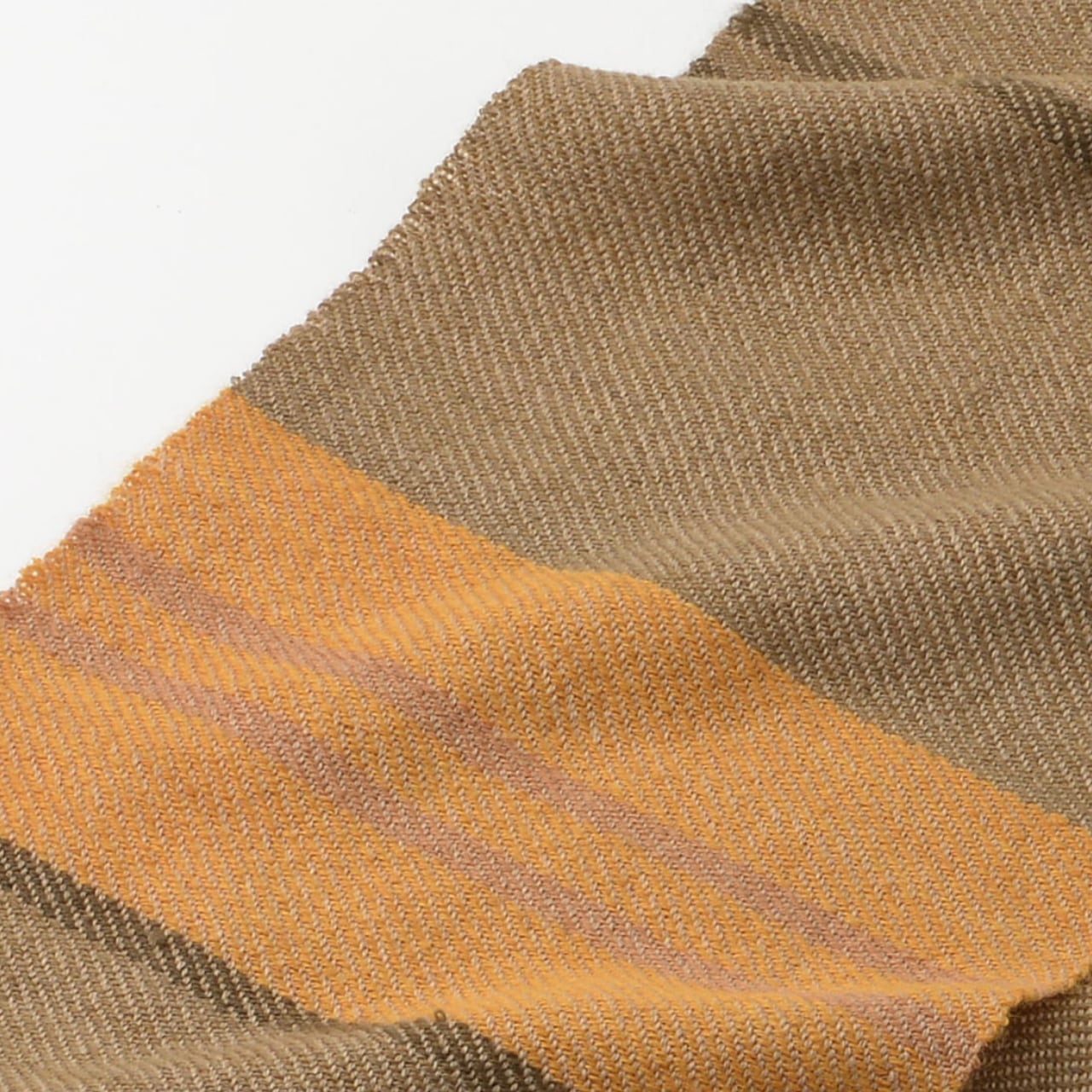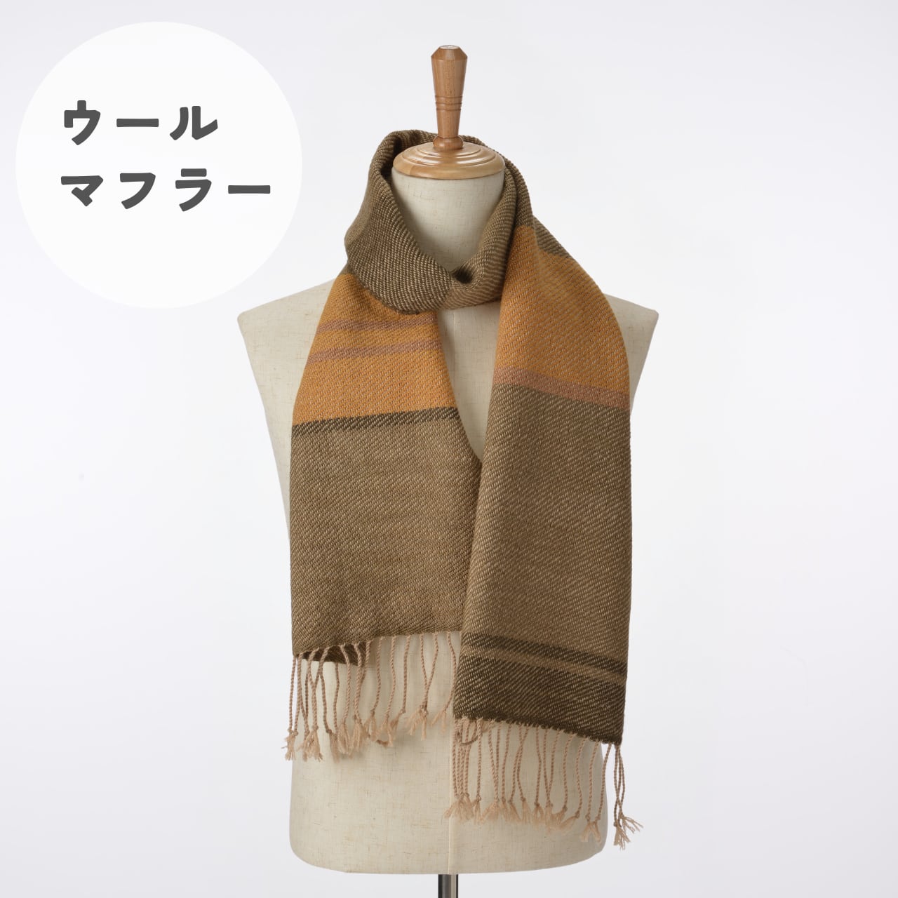 季節を纏う — 草木染めウールの手織りマフラー ― カーキのランダム縞・綾織 ―