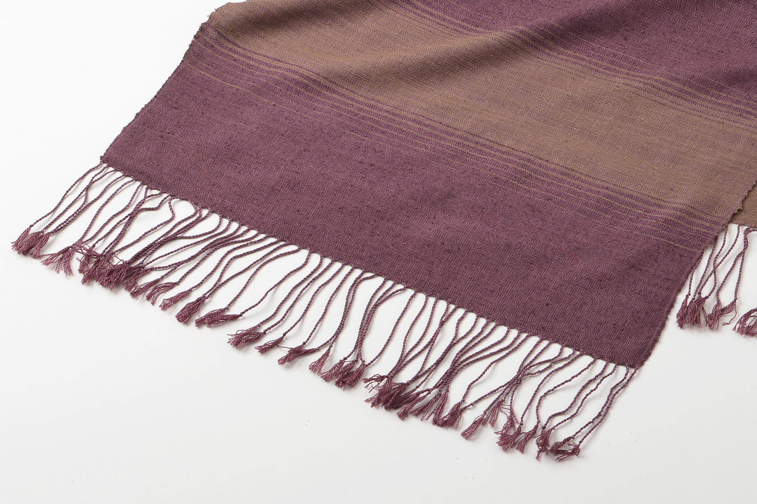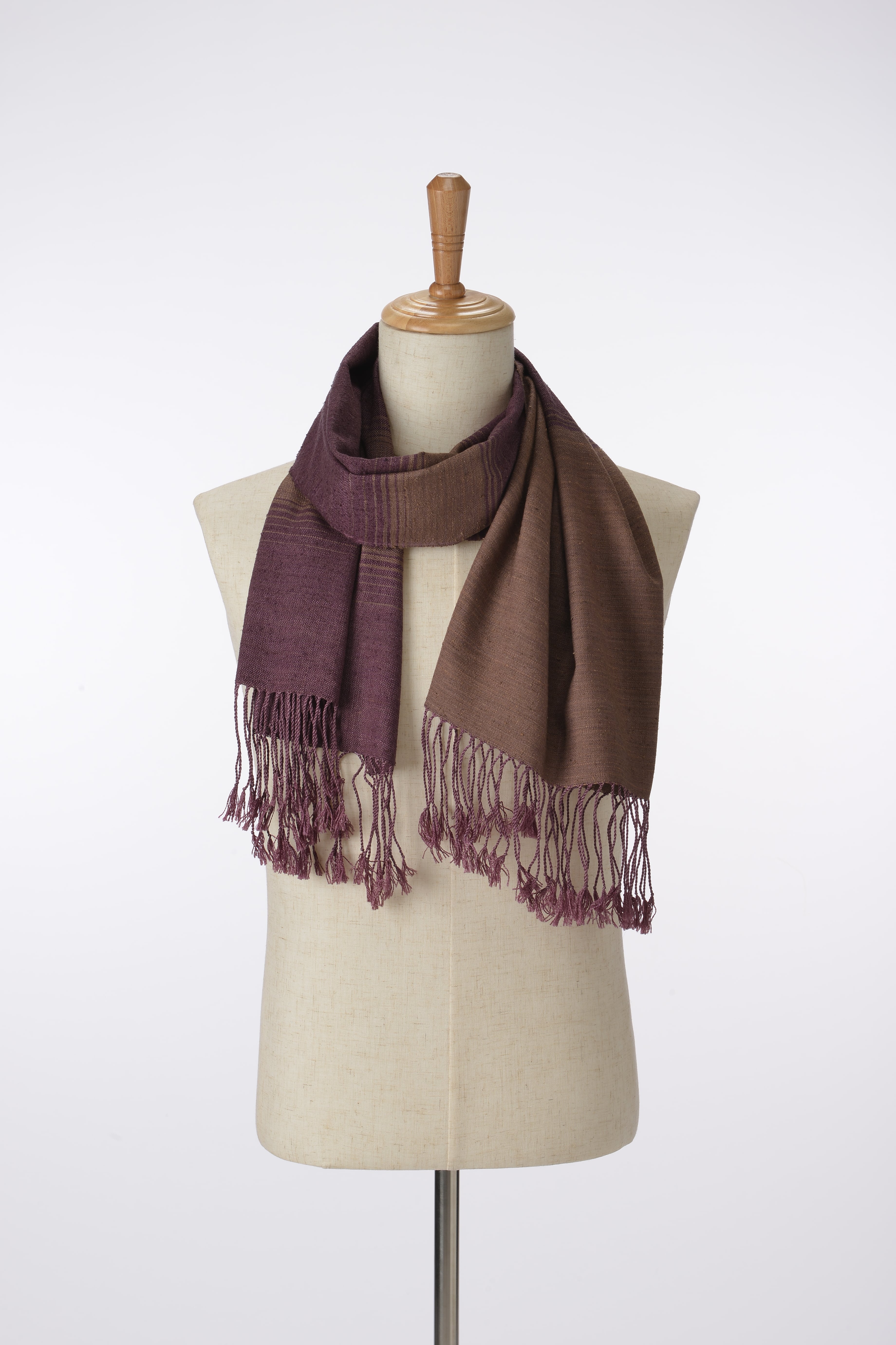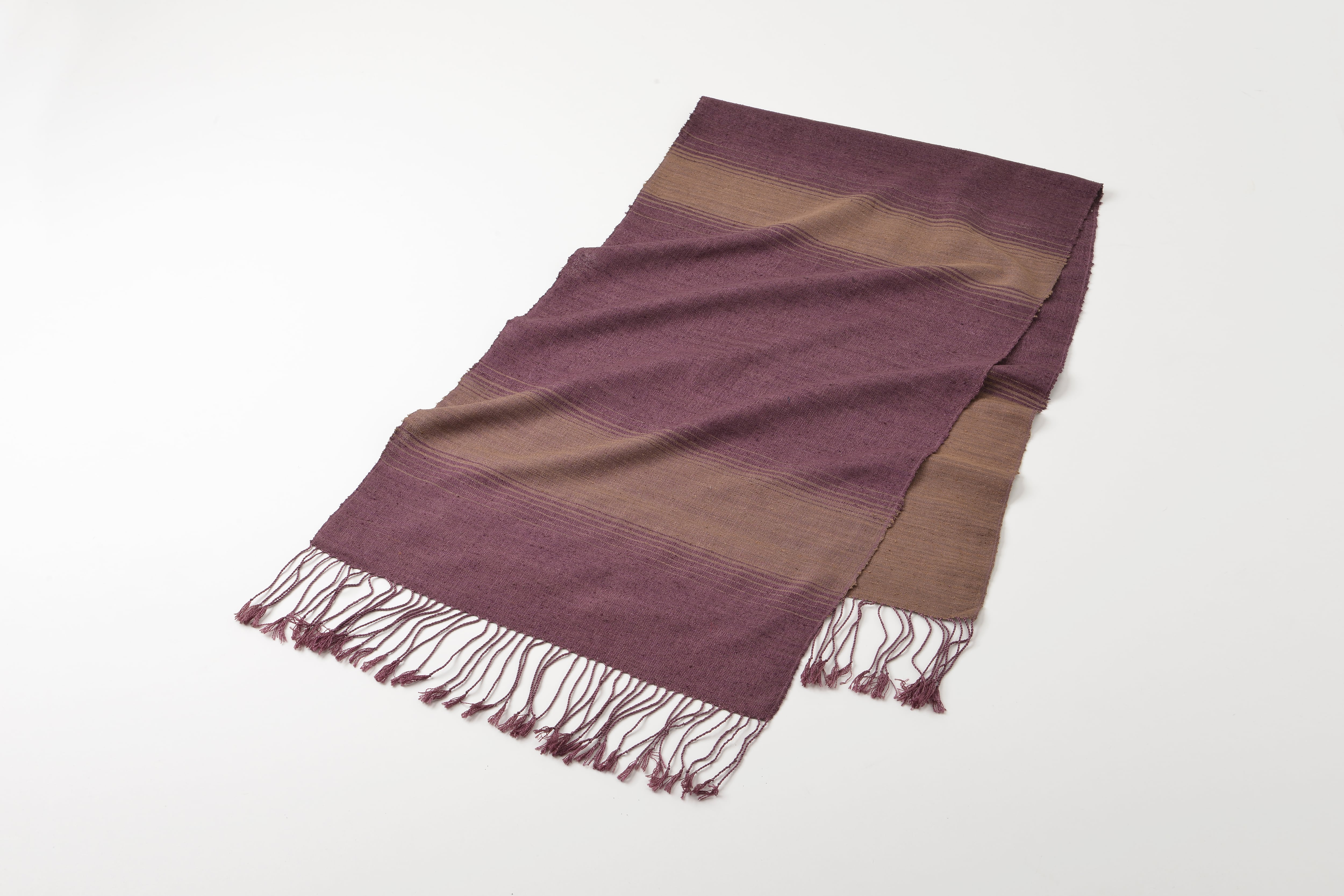 【手織り・草木染シルク】深呼吸する紫と茶。幾重にも染め重ねた大人の洗練ストール|46cm幅の贅沢な一枚