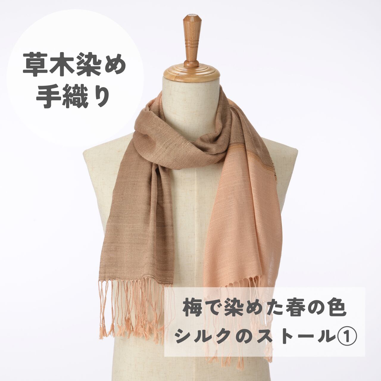 【春をまとう】梅染めシルクの手織りストール|ピンクベージュ×ブラウングレー|卒入学式・お祝いの席にも|46cm幅ロングサイズ